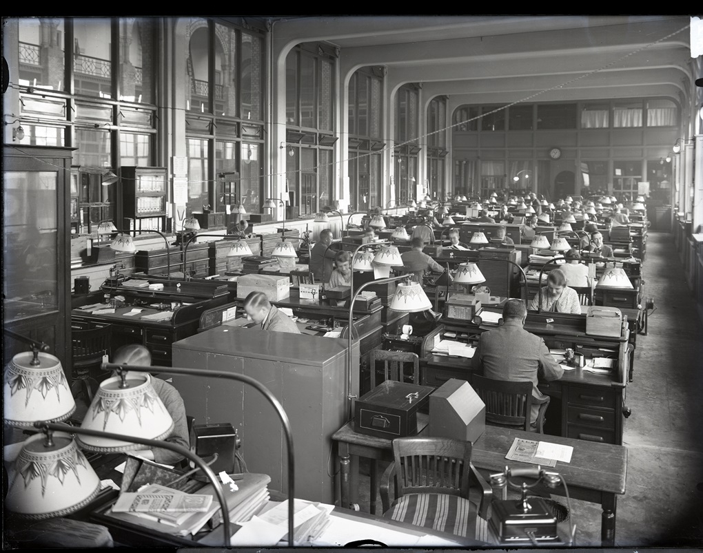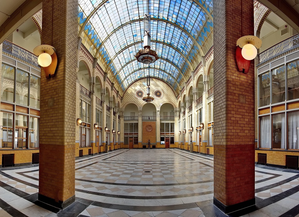 Het ontwerp kende een moeizame ontstaansgeschiedenis. In de eerste plannen was een open binnenplaats voorzien, met kantoren aan galerijen eromheen. De directie liet zich inspireren door oudchristelijke basilieken en Romeinse markt- en gerechtsgebouwen met een open hof. Uiteindelijk koos men voor een met glas overdekte hal, vergelijkbaar met de hal in de Beurs van Berlage (1903). De directeuren kwamen herhaaldelijk met nieuwe wensen, waardoor de architecten het ontwerp telkens moesten aanpassen.