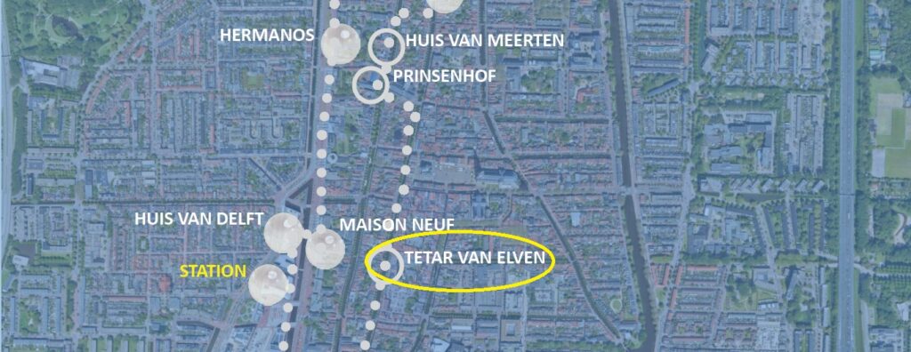 Jacques schreef in 1866 aan zijn verloofde Agneta Matthes: ‘Tetar van Elven, van wie ik tekencollege krijg, is een allercharmantst mens, je kunt je geen innemender man voorstellen.’ Hij bezocht zijn docent enkele malen aan de Koornmarkt en was onder de indruk van diens bevlogenheid. Mogelijk heeft Tetar van Elven Van Marken op het spoor gezet om kunstenaars te betrekken bij de publiciteit voor de producten van de Delftsche Nijverheid.