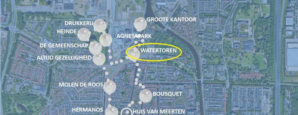 Totdat de watertoren volledig in gebruik was, regelde Van Marken voor zijn fabrieken en de bewoners van het Agnetapark watertransporten per schip uit Den Haag naar Delft. Vanaf de toren heb je uitzicht op het Agnetapark en het terrein van DSM.